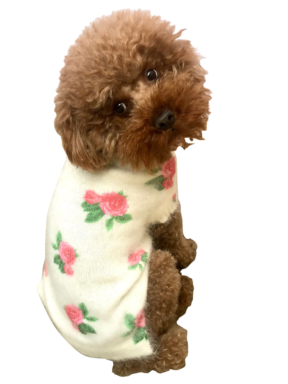 This stunning angora sweater will make your dog look and feel enchantingly soft and luxurious. Intricately handprinted roses grace the ivory angora blend - a perfect combination of warmth and style.